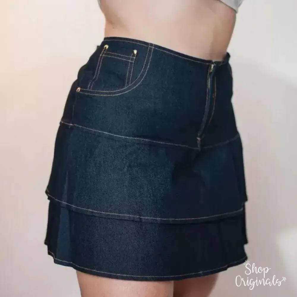 Temos a saia a pronta entrega, não precisa esperar para ter essa raridade no seu guarda-roupa. Vai ser difícil escolher qual Rebelde você será, usando essa saia jeans incrível e cheia de pregas.