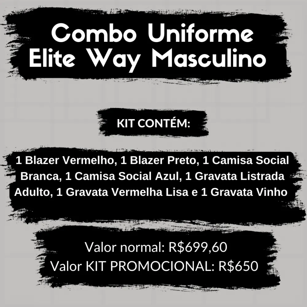 ATENÇÃO !:  O valor do kit está incluso: 1 Blazer Vermelho, 1 Blazer Preto, 1 Camisa Social Branca, 1 Camisa Soc