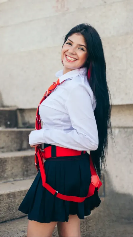 - Esse kit é super completo, nele está incluso: 1 Blazer Vermelho, 1 Camisa Social Branca, 1 Suspensório Vermelho, 1 Gravata Listrada Adulto, 1 Cinto, 1 Saia Jeans e 1 Saia Azul (Com ou Sem tule)