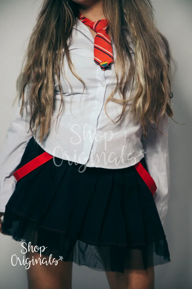 Imagina só realizar o sonho de infância de se sentir no Elite Way School? Aqui na Shop RBD Originals você pode realizar e por um preço justo. Esse kit é bem completo para quem quer ser uma verdadeira rebelde. Lembrando que esse é estilo Mia, então a saia é mais curtinha, vamos deixar a baixo as descrições dos itens detalhados.